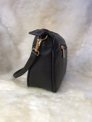 Bolsas de couro sem pelo. Acompanha alça com opção de regulagem.