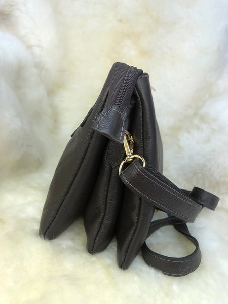 Bolsas de couro sem pelo. Acompanha alça com opção de regulagem.