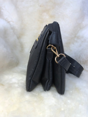Bolsas de couro com pelo. Acompanha alça com opção de regulagem.