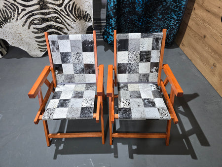 Kit Cadeiras De Couro Legítimo Dobrável Cor Salpicado Preto e Branco Com Pés Madeira.