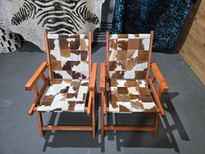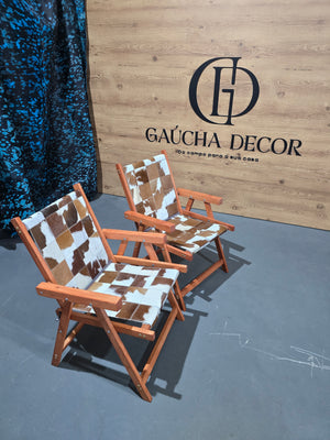Kit Cadeiras De Couro Legítimo Dobrável Cor Marrom e Branco Com Pés Madeira.