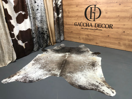 Tapete de Couro Salpicado Cinza Tricolor - Tamanho: 2,36 x 2,09 - Ref.: 3077